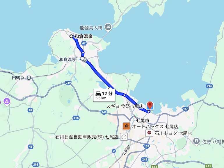 能登食祭市場は、ほっとらんどNANAOからは、車で37分の場所にあります。